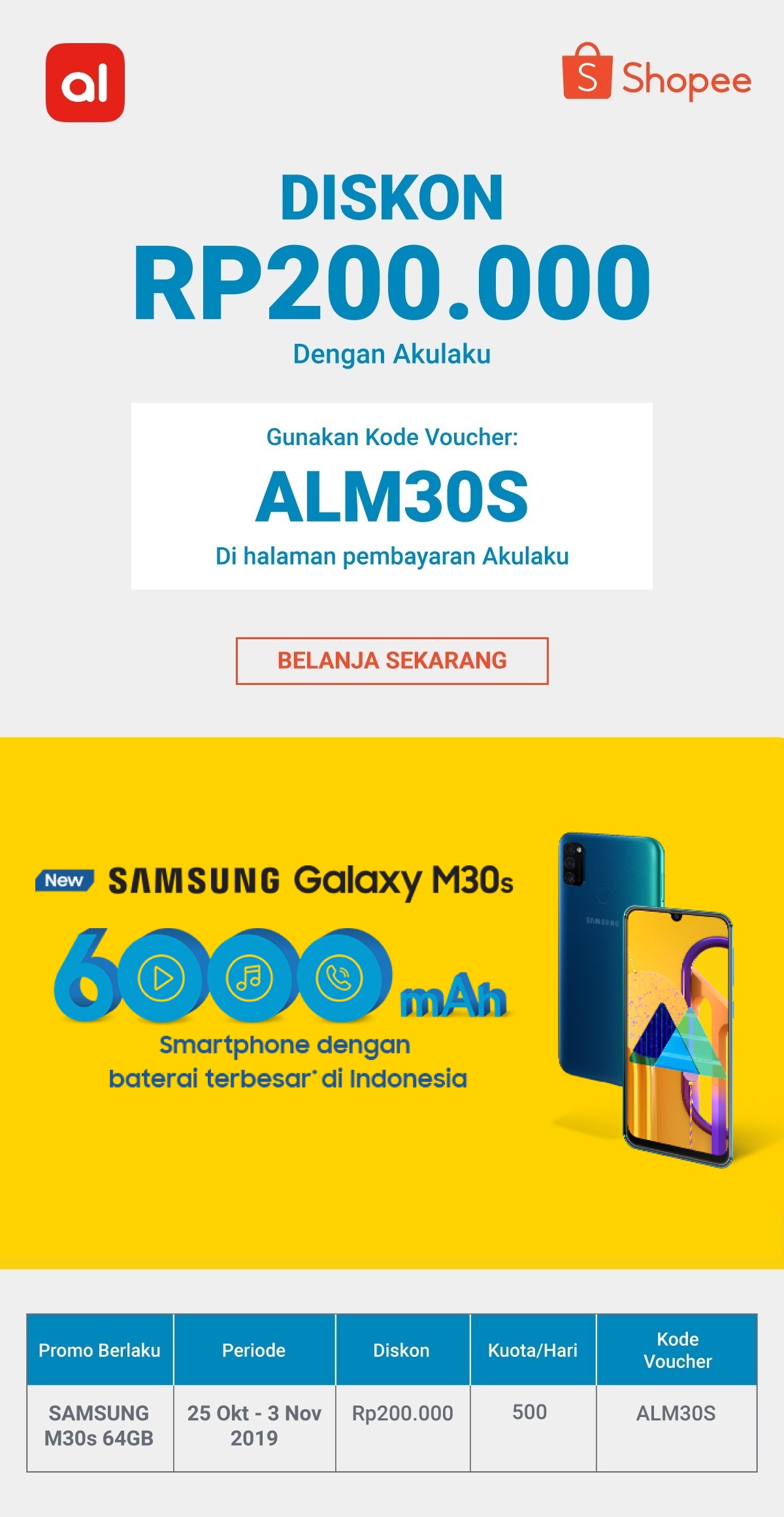 Flash sales samsung galaxy m30s. penawaran flash sales samsung galaxy m30s (penawaran ini selanjutnya disebut “promo”) berlaku terhitung sejak tanggal 25 oktober s. d 3 november 2019 (“periode promo”) di semua partner online yang berpartisipasi dalam penawaran promo ini. Hi @cartenzk, untuk mengunci atau lock aplikasi, samsung galaxy m30s tidak ada aplikasi bawaan dari samsung yg dapat melakukan hal tersebut. kamu bisa . Samsung indonesia bekerja sama dengan pt laku6 online indonesia (selanjutnya disebut laku6) untuk melakukan program trade in/tukar tambah ini. laku6 tidak bertanggung jawab atas kehilangan data yang terjadi setelah proses reset pabrik, sim card, dan segala klaim yang berhubungan dengan data yang tersimpan di handphone konsumen seperti data.
